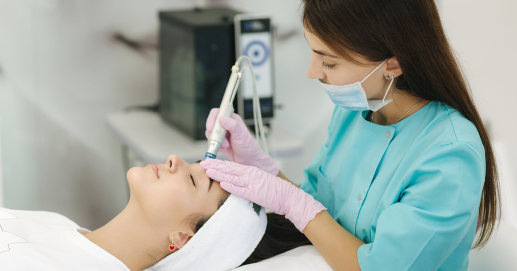 Hydrafacial is a non-invasive and multi-step facial treatment that uses a patented technology to cleanse, extract, and hydrate the skin. The treatment involves the use of a handheld device that uses a combination of suction and hydration to remove dead skin cells, unclog pores, and infuse the skin with antioxidants, peptides, and hyaluronic acid. The treatment is customized to each individual’s skin concerns and can target a range of issues such as fine lines, wrinkles, hyperpigmentation, and acne. Hydrafacial is painless and requires no downtime, making it a popular choice for those looking to improve their skin’s appearance without surgery.